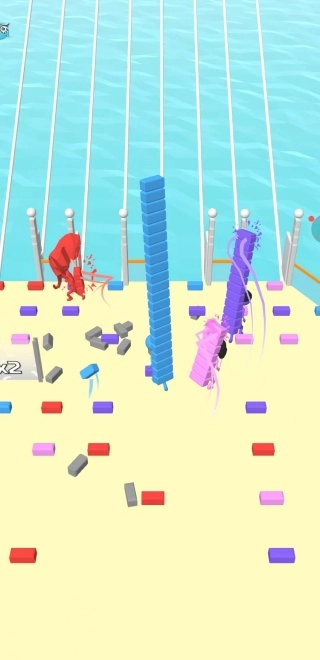 2、玩家在奔跑时要收集砖块之类的材料,利用这些材料搭建桥梁来跨越障碍,从而顺利抵达终点。