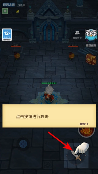 2、进入关卡后,按照界面提示点击攻击按钮,对场景中的敌人发起攻击,通过持续点击积累伤害,逐步击败当前区域目标。