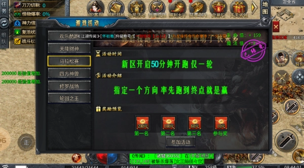 3、天降财神:新区开服40分钟后启动,仅进行一轮。活动地图里遍布各类奖励,玩家能够畅快拾取。
