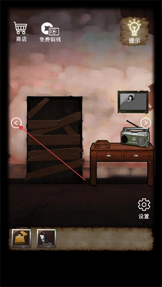 4.在场景界面中,点击左侧的箭头按钮,能够切换当前场景的视角,查看更多区域的内容以寻找物品或线索。