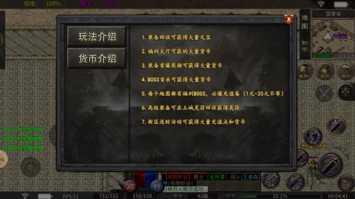 5、每张地图都设有福利BOSS,挑战成功后必定会掉落1元到20元不等的充值券。