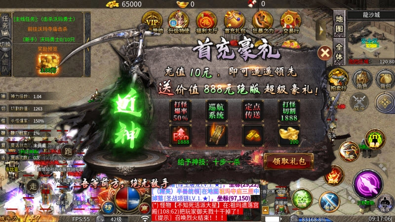 1转装备可通过NPC自由合成,轻松起步神装,可查看小地图寻找合成NPC的位置。