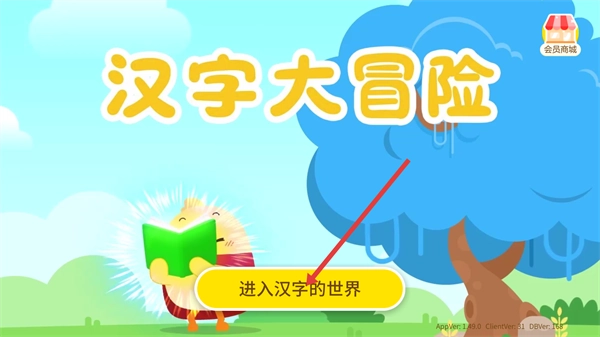 1、点击【进入汉字的世界】按钮,即可开启【汉字大冒险】的学习流程,进入游戏化的汉字认知环节。