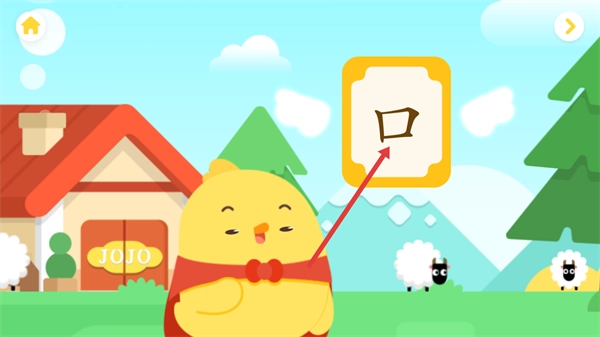 2、找到页面上显示的汉字【口】,点击进入这个汉字专属的学习场景,开始学习与该汉字相关的认知内容。