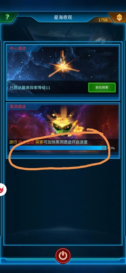 五、每天可免费5次刷新星海奇观。在奇观里有中心遗迹和黑洞遗迹。可以在中心遗迹消费模组,购买相应技能和“星海结晶”,同时可推进黑洞遗迹“进度条”,进度条满,自动开启黑洞遗迹,可白嫖一次,然后可用氪金随机抽取黑洞遗迹技能。(钱多没处花可以抽)