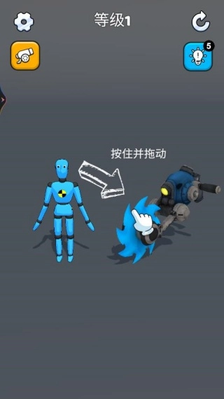 2、游戏刚开始的几关难度不高,系统会给出一些小提示,像怎样拖动布偶完成击打动作,能让你轻松熟悉玩法。