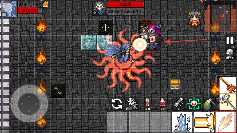 3、战斗时攻击【吸血鬼】,需留意自身当前血量(2918/3725),通过释放技能保持持续输出,另外别忘了探索场景里的宝箱获取资源。