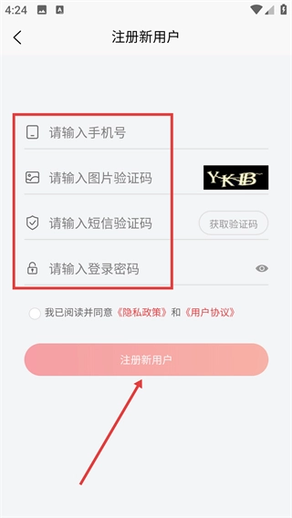 2、在注册页面按顺序填写【请输入手机号】等相关信息,接着获取并填写短信验证码,然后设置登录密码,即可完成注册流程。