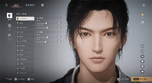 4、在捏脸模式中,玩家可以自由调整角色的脸型等,甚至细化到单侧调整