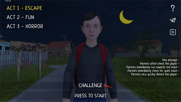 1、点击 CHALLENGE 选择难度