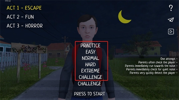 2、一共拥有六个不同的难度挑战,分别是,实践、容易、正常、困难、极端、挑战。