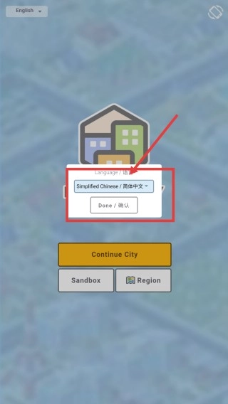 1、在【language】下拉框中选择【SimplifiedChinese/简体中文】,点击【Done/确认】按钮完成语言设置。