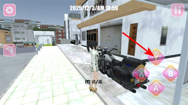 2、在城市场景里靠近摩托车这类其他交通工具后,按下Y键之类的对应按键就能触发骑乘动作,从而切换到速度更快的交通工具,以此提高跨区域移动的效率。