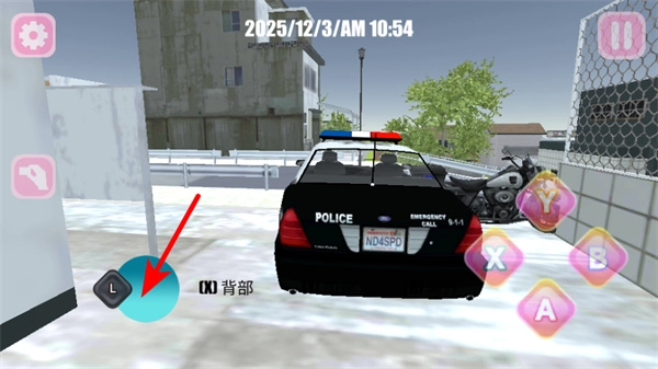 4、当遇到警车这类特殊车辆时,靠近后可通过左侧按键来调整交互状态,试着触发相应的互动操作,以此解锁更多场景交互内容,让校园外的探索体验更为丰富。