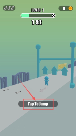 1、开启闯关准备:选定目标关卡,掌握点击跳跃的操作方法,留意赛道上陷阱与障碍的分布情况,确立“冲向终点争夺第一”的核心目标。