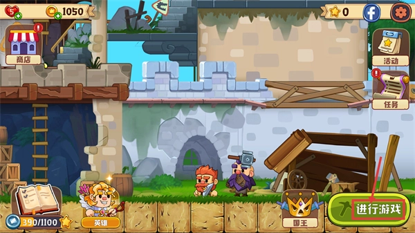 1、界面包含【商店】【任务】等功能模块,当前持有【1050】金币,点击【开始游戏】按钮,就能启动【查克】的挖矿资源收集流程。