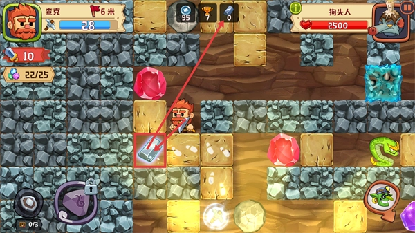 3、矿洞深度已达6米,宝石收集进度为【22/25】,镐子的耐久度当前显示为【28】。收集完道具后,奖杯数量提升至7个,接下来需继续开采以推进资源收集进程。