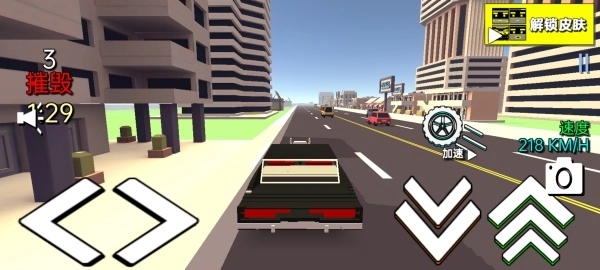 2、沿路撞击各种车辆,掌握好前进的方向,极速的冲刺,获取丰富的奖励。