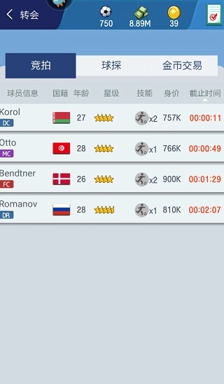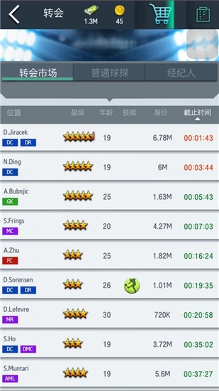 游戏里的转会市场是个自由拍卖球员的平台,你能在这里找到各个位置、各种类型的球员,通过竞标参与争夺,出价最高的人就能得到球员。另外,玩家也可以把自己拥有的球员放到这个竞拍平台上,完成交易后就能拿到一笔可观的转会费。