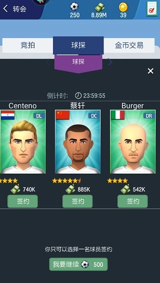 要是说球探发掘的球员是具备后续培养潜力的种子选手,那经纪人签下的球员就是光芒四射的球星。他们有着出色的个人实力和专属技能,说不定就是我们足球王国里的梅西或C罗呢。不过优秀的球员必然要投入不少成本,金币加上常规签约费对普通玩家而言还是挺高的。