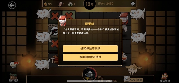 楼层比较高的地方会有一台扭蛋机,有50和500两种选择,投50能得到随机奖励,我抽到过经验点;投500的话会给什么奖励我不太清楚,毕竟我没那么多钱,但据说投500能触发“大力抽奇迹”这个事件。