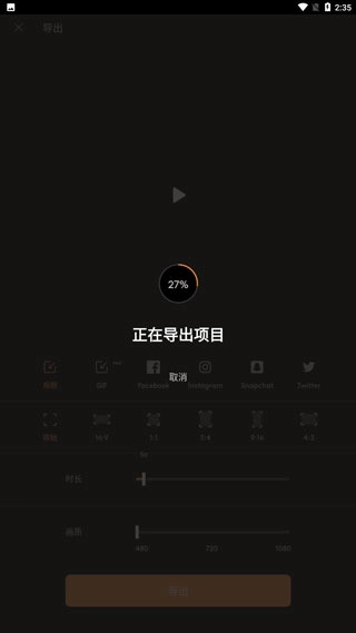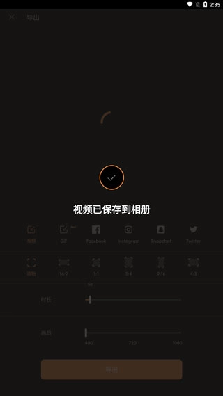 2、选择导出的视频时长,画质等;