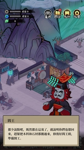《地府一日游》是一款简单易上手的休闲经营游戏,题材新颖大胆,剧情幽默风趣。在游戏里,你将化身地府管理者,通过建造各类地府设施来打理地府事务,同时还需审判前来报到的亡者,依据他们的生前经历做出公正裁决,助力更多鬼魂净化过往罪业,得以超脱解脱。