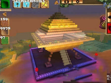 1、挑选一块场地铺设成飞碟降落台,面积可自行决定;降落台的四周用水晶块围起来,四个角落设置信号灯,同时在降落台上搭建飞碟支柱。