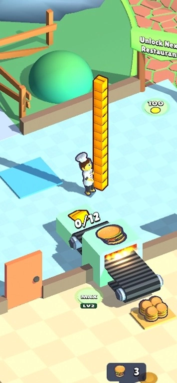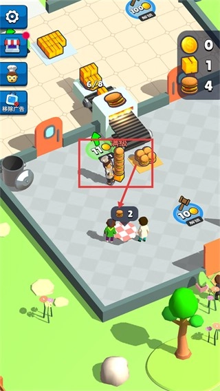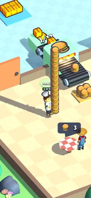 3、按照指引完成食材的堆叠操作,把制作好的成品交付给顾客来积累收益,与此同时还能解锁更多食材的加工权限,让烹饪的品类变得更加丰富。