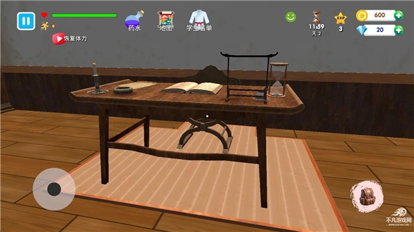 1、进入游戏后,点击左侧的摇杆就能操控角色移动,当角色靠近物品时,右侧会自动弹出交互按钮。