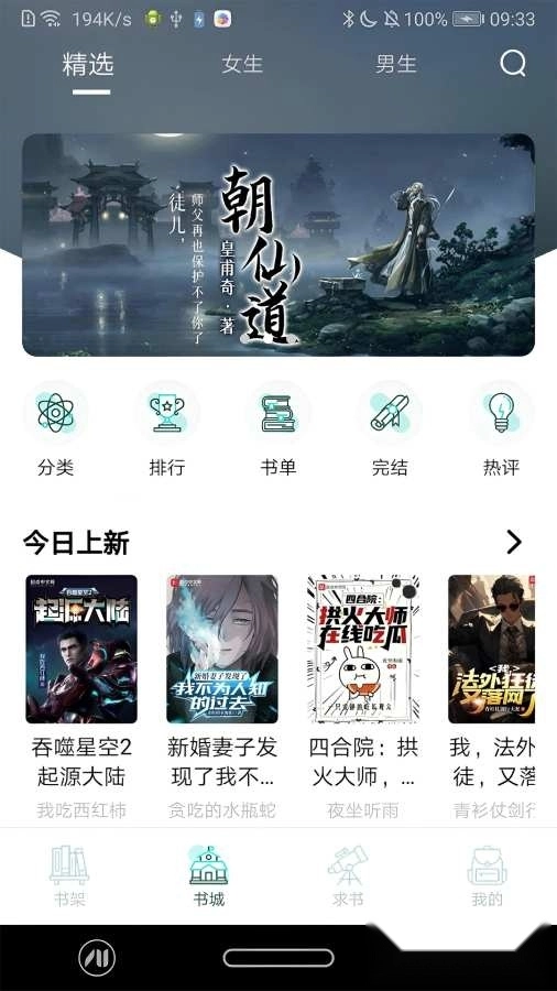 1、打开软件进入到书城可以看到许多的小说题材