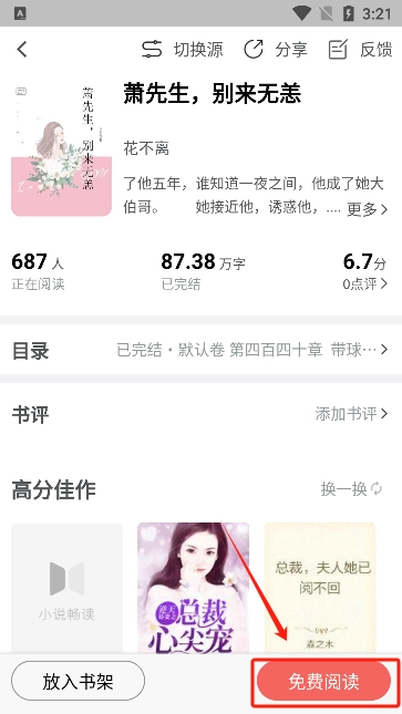 4、点击喜欢的小说进入到详情页浏览