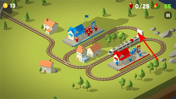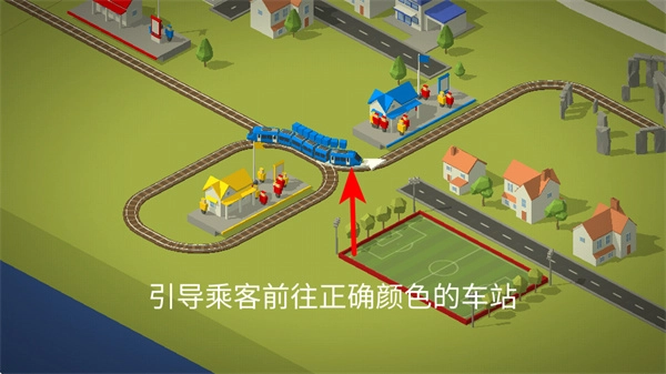 运输乘客时,要让火车和车站的颜色对应起来,通过切换轨道引导火车开往颜色相同的站点,这是完成运输任务的核心规则,能帮助高效获取奖励。