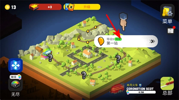 2、在关卡界面,点击第一站类的进度提示可查看当前运输目标,明确需送达的站点与乘客数量,便于规划轨道切换时机与路线。
