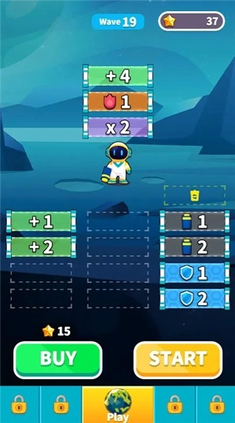 战略运用道具:游戏内设有多种可供自由使用的道具,像“门”这类道具能够实现射击倍增、冻结小行星等效果。