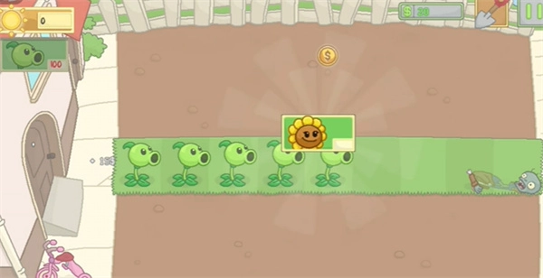 3、玩家能够在草地上栽种豌豆射手,努力消灭所有僵尸,在此过程中别忘了收集阳光。