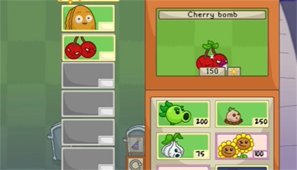 3、樱桃炸弹:一旦种下,就能一次性清除其周围的全部僵尸。