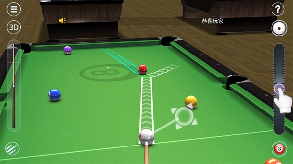 3、向左拉动球杆可调节击球力度,拉动的距离越长,击球的力度就越大。
