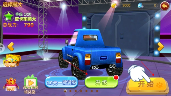 1、皮卡车熊大:作为初始机甲,皮卡车熊大免费获得,初始总战力为790,攻击力535,耐久力510。它适合新手玩家熟悉游戏操作,通过升级可逐步提升战力。