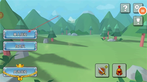 1、在游戏主界面点击单人战役按钮,即可进入单人关卡的游玩模式,开启战役挑战。