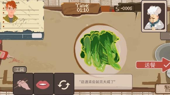 由在校大学生团队开发的休闲益智游戏《扒拉餐厅》,核心玩法围绕菜品审查展开。玩家在游戏里化身后厨工作人员,既要仔细检查菜品中是否混入异物,又得保证菜品契合顾客的口味偏好。借助游戏内的交互机制,比如扒拉菜品查找异物、品尝菜品确认调味等操作,玩家能够切身感受到后厨工作的紧张氛围与独特挑战。