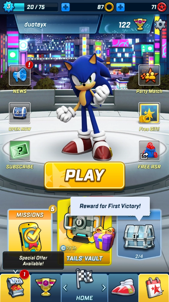 1、跟随索尼克,用旋转、跳跃与滑动的动作赢得每场比赛的胜利,也能和好朋友一同较量,比比谁的速度更胜一筹!
