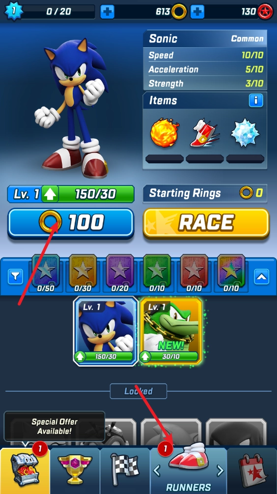 3、我们还可以通过收集角色碎片来为其升级,持续提升它的各项技能,使它在比赛中跑得更快。