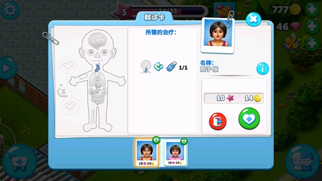 3、点击病人即可查看他的就诊卡,然后了解治疗所需要的药剂。