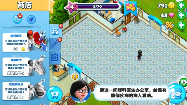 在游戏里,我们得针对不同项目设立相应科室,这样才能诊治对应类型的病人;同时还要在实验室里研发各类药剂,用来攻克各种疑难病症!另外,营造良好的环境也很关键,我们可以自由搭建医院的花园,帮助患者保持更愉悦的心情!