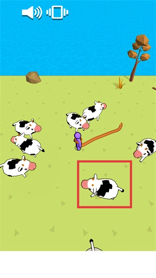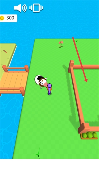 2、拖拽已捕获的奶牛,朝着场景中的桥梁方向移动,避开其他奶牛,推进运输流程。