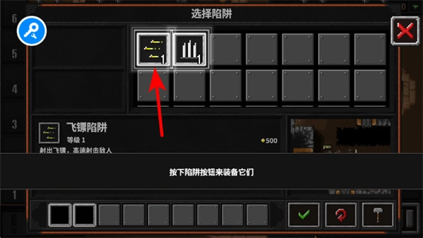 3、在陷阱选择界面点击目标陷阱,这是配置防御设施的核心操作,选定后该陷阱会被纳入可布置的选项,为地牢防御提供攻击手段。