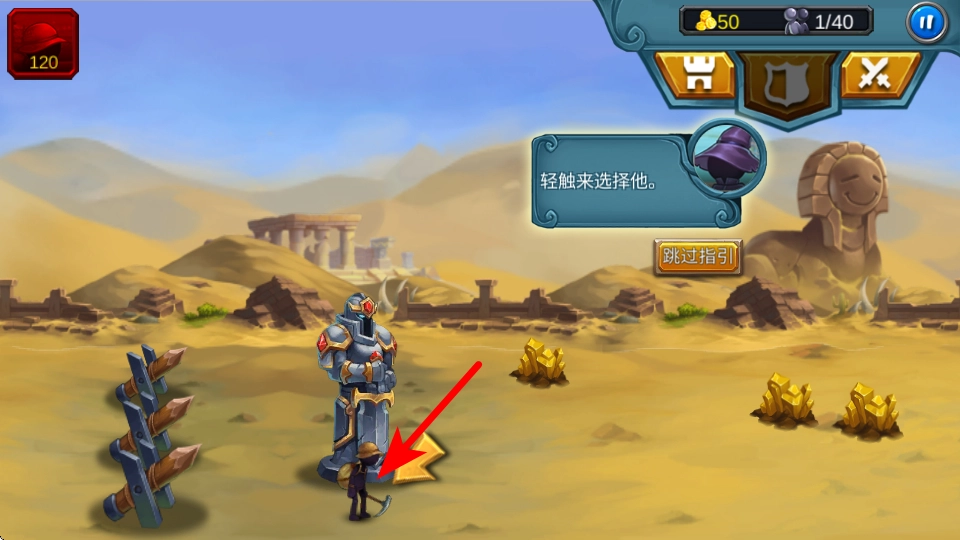 4、操控选中的矿工移动至金矿位置,这是推进资源收集的重要操作,矿工到达后会自动采集金矿,持续积累金币资源,扩充战场布局。