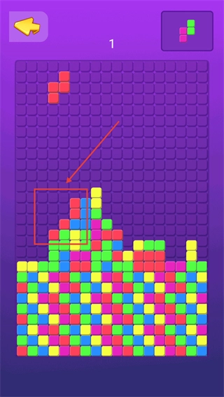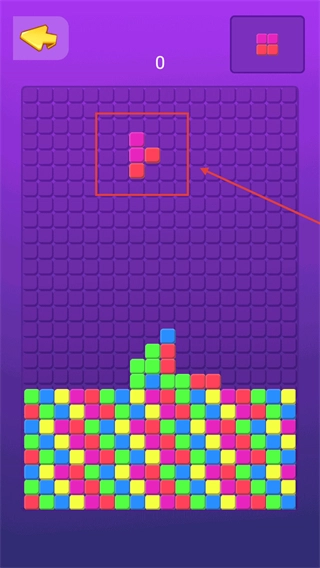 3、操控界面里的【红色-粉色】方块组合进行左右移动,找到恰当位置放置,使其与下方方块相连即可消除并得分。