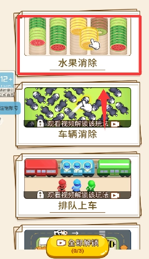 2、进入游戏界面点击水果消除并进入。